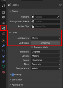- Go to Scene Properties (teardrop icon on the right) > Units > Metric and change it (millimeters are best for 3D printing, but I like to use centimeters for art projects